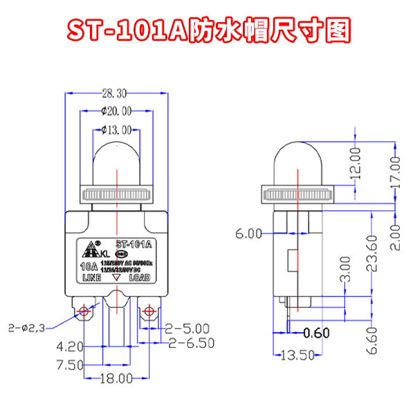 ST-101A 防水系列 手動(dòng)復(fù)位電流過載保護(hù)器 用于移動(dòng)插座 排插 轉(zhuǎn)換器